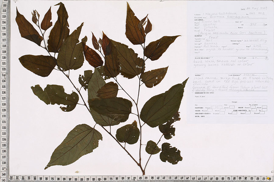 Bark is used in red dye process when there is no morinda (Joanina Marques). Greweia identified from tetun dye list given by Tony.