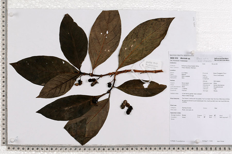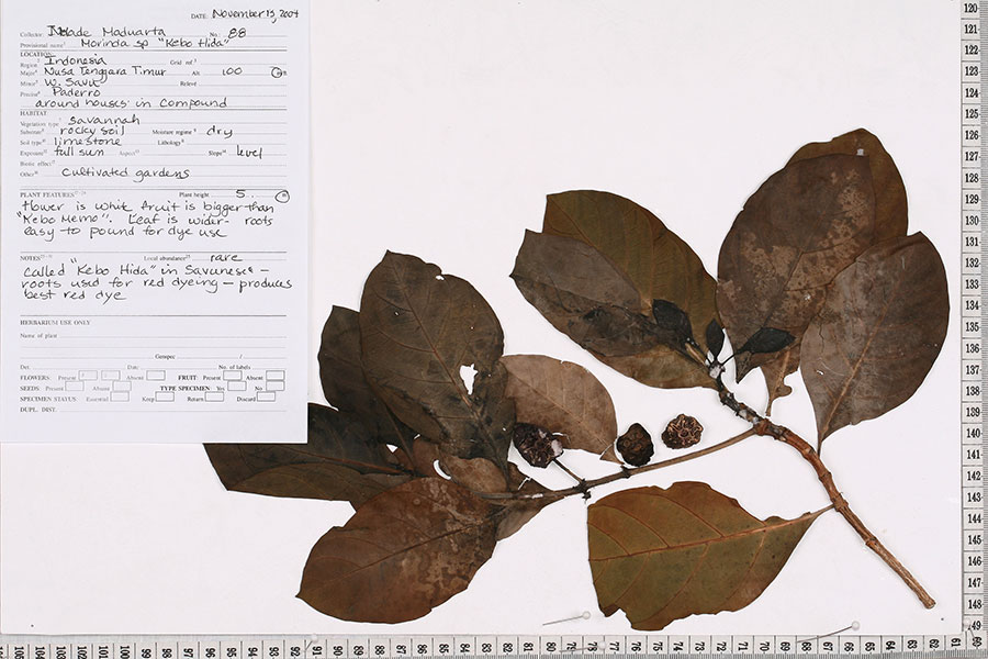 Root bark of this plant is preferred as it produces a good quality red dye. Tony Cunningham notes that this is the only chemotype used on Raijua, although both Kebo Hida and Kebo memo occur here.