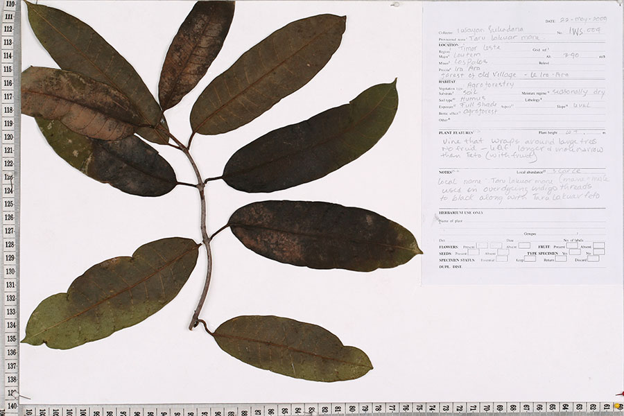 Taru lakuar mane used in overdyeing indigo threads to black along with Taru Lakuar Feto (female plant). Leaves are used for making black dye.