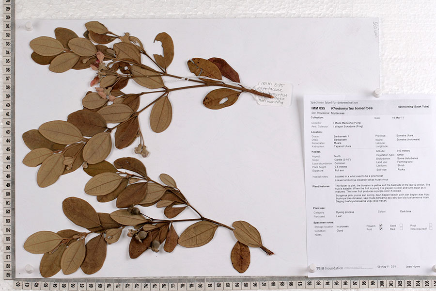 The leaf is in combination with guava and melastoma leaves to make a bath that the blue threads are then soaked in before being processed in mud