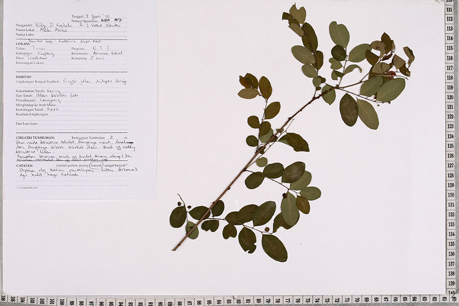 Meko (Dawan language) heard as buah tinta (ink fruit). Called Mek Meko in Amarasi.