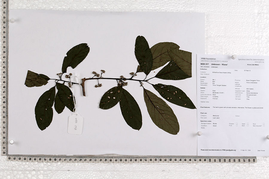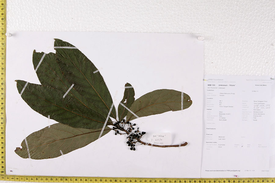 Daun dan kulit kayu dikunyah, lalu ditempelkan pada kepala atau perut orang yang sakit