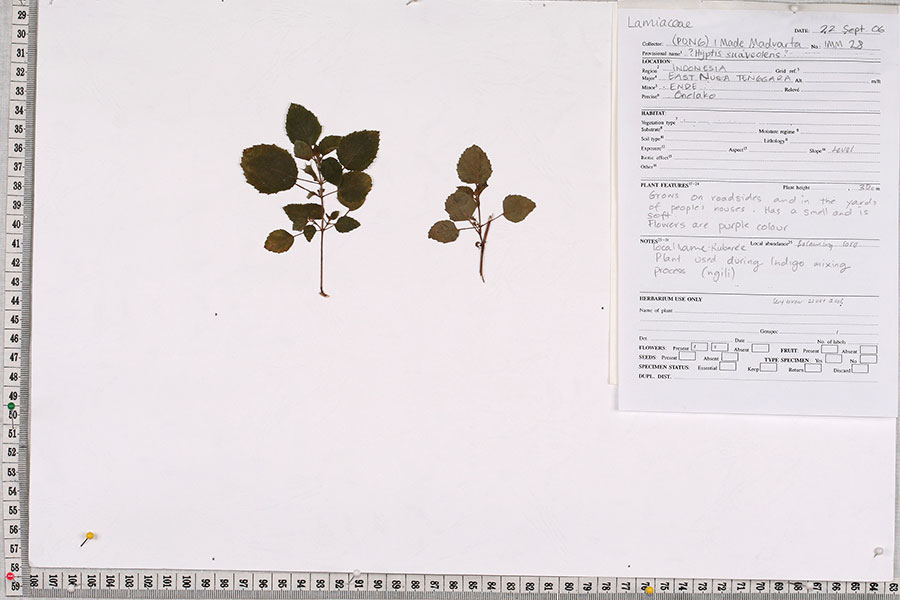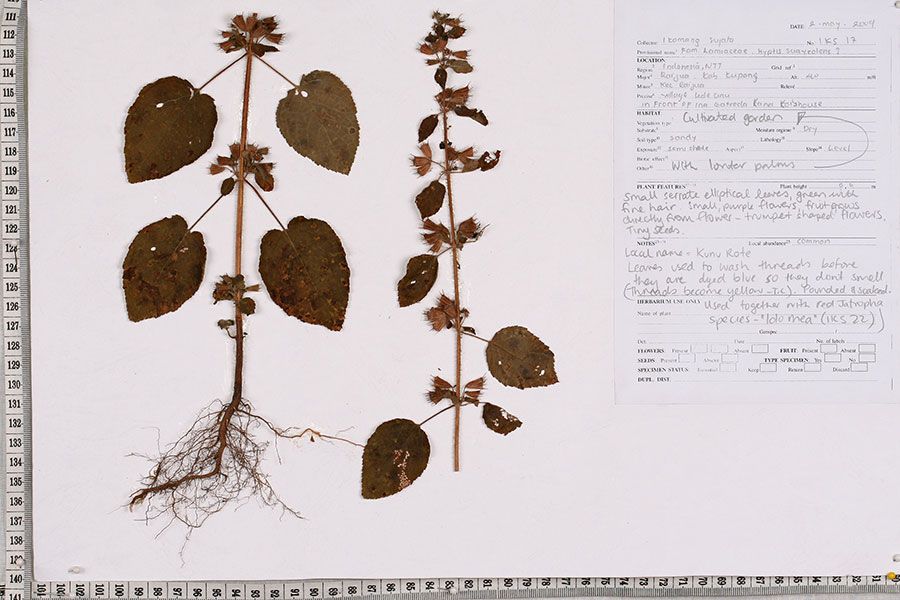 Leaves used to wash threads before they are dyed blue so they don't smell. Leaves are soaked in the water, the leaves are then discarded and the threads are washed in the water. The threads take on the yellow colour of the water. Tony Cunningham also notes that leaves are pounded and soaked, this is used together with Lolo mea (IKS 022) the red Jatropha species.