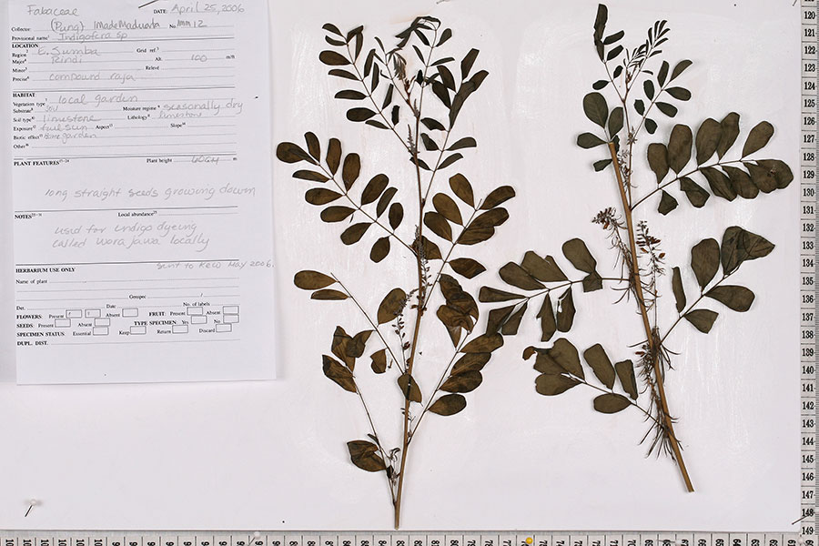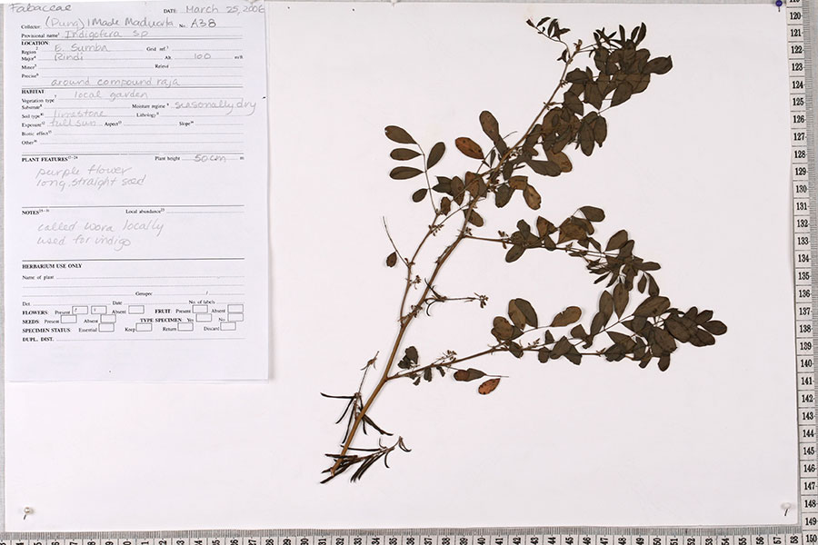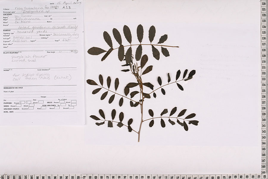 The whole plant (except the roots) are harvested and used for producing indigo dark blue dye. Plants are harvested annually just after the rainy season and when the fruit has set and turned brown.