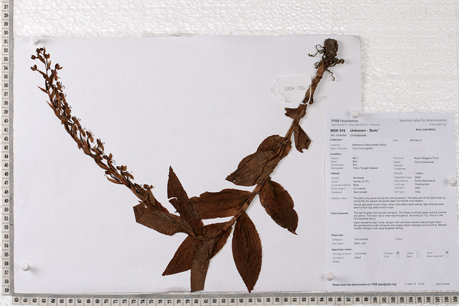 In Boti the root is used as a glue for making the guitars. They rub the root onto the wood. It is also used as a glue to attach the knife blade to a wooden handle. The bulb is roasted and the inside is what is used as the glue